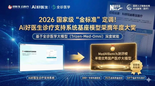 而AI好医生诊疗支持系统,其专业实力也得到了行业的高度认可,继同源底层基座模型——全诊医学大模型(Trizen-Med-Omni)获评MedAIBench测评榜“优秀国产医疗大模型”的基础上,它又在博鳌企业论坛暨博鳌健康产业论坛中斩获“AI人工智能卓越产品”。这不仅是行业对该系统技术实力与产品价值的双重肯定,更是对好医生云医疗集团以科技赋能基层医疗、践行民生服务理念的高度认可。